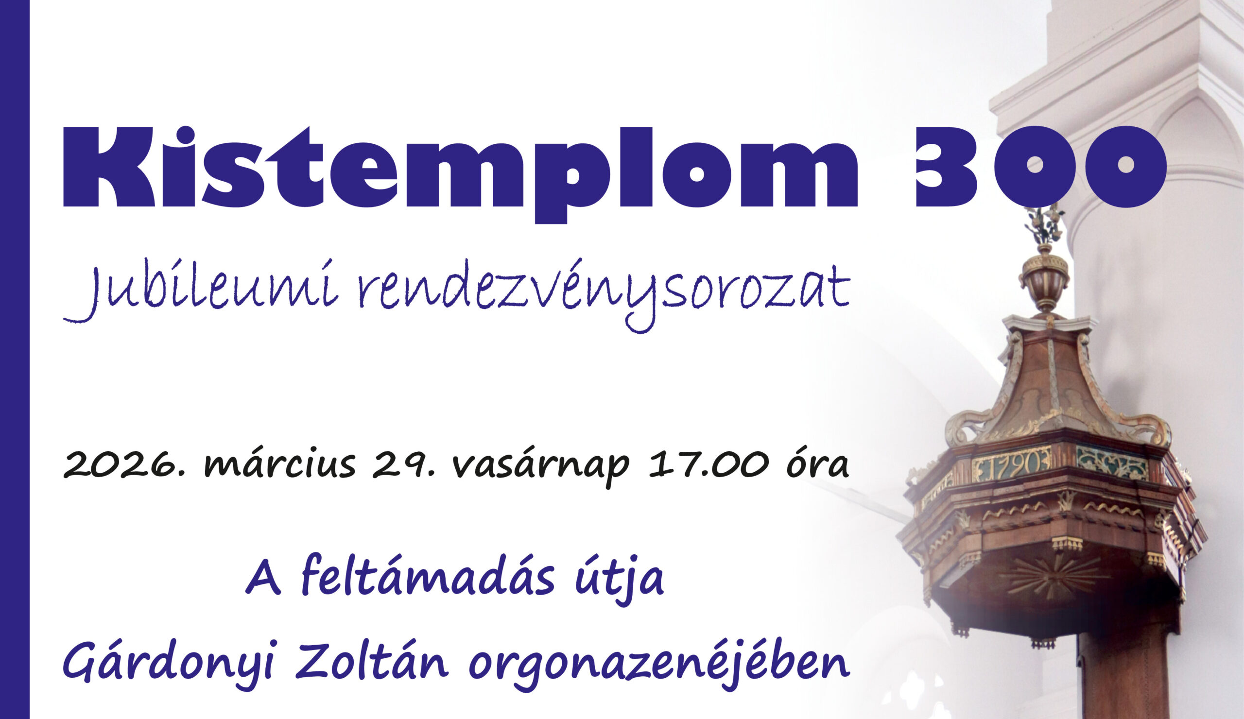 Kistemplom 300 Jubileumi koncertsorozat 2026. március 29. vasárnap 17.00 A feltámadás útja Gárdonyi Zoltán orgonazenéjében Tabajdi […]